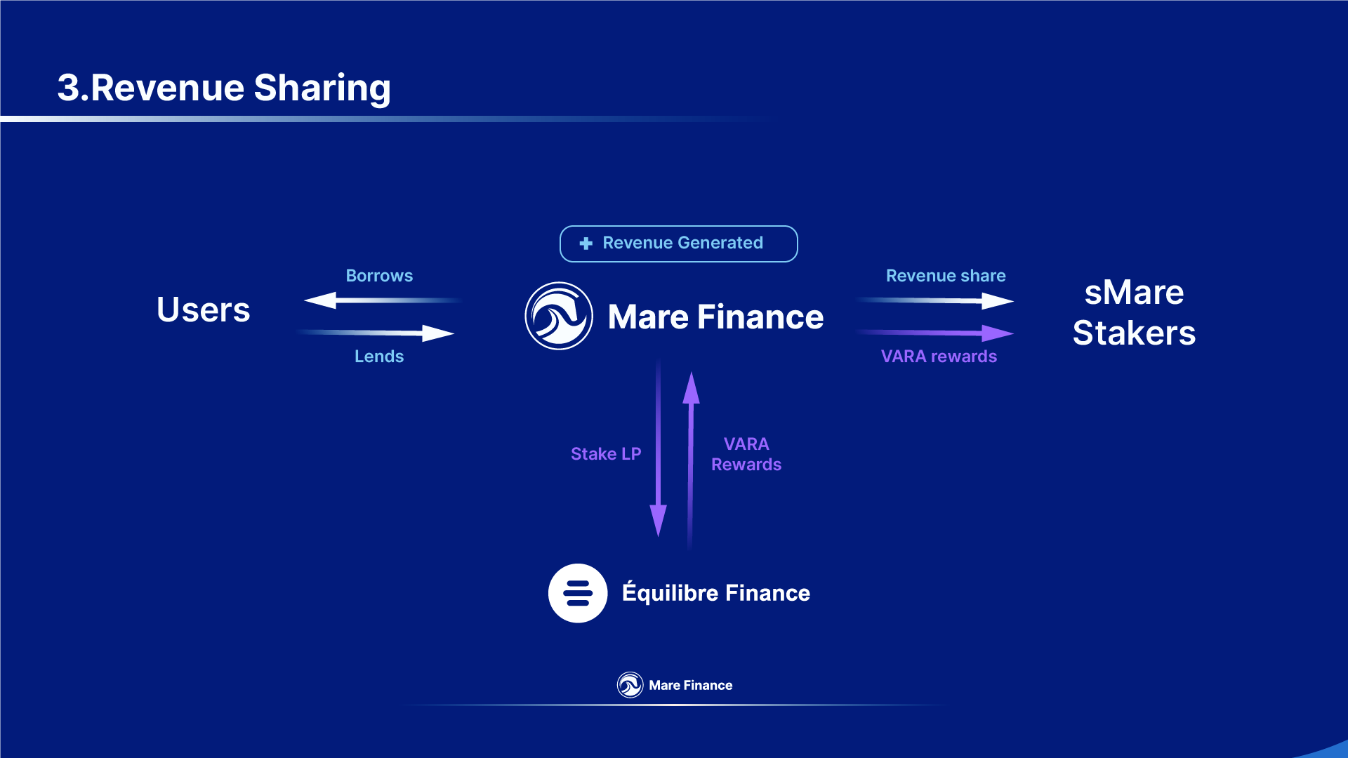 * **Revenues** will be **distributed** based on your **share of total sMARE** supply. (If you have 100k sMARE and there is total of 1M sMARE , you'll be entitled to %10 of the rewards.